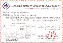 A級(jí)工業(yè)設(shè)備化學(xué)清洗資質(zhì)證書(shū)
